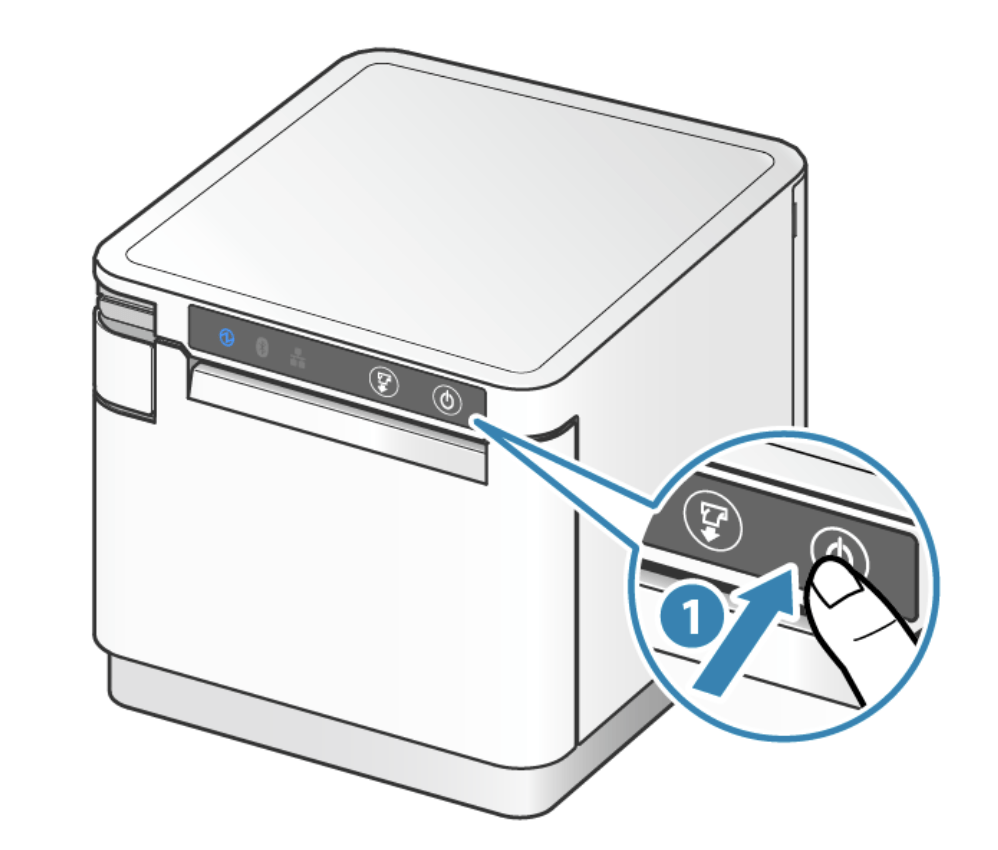 Le bouton d'allumage se trouve en haut à droite de la face avant de l'imprimante.